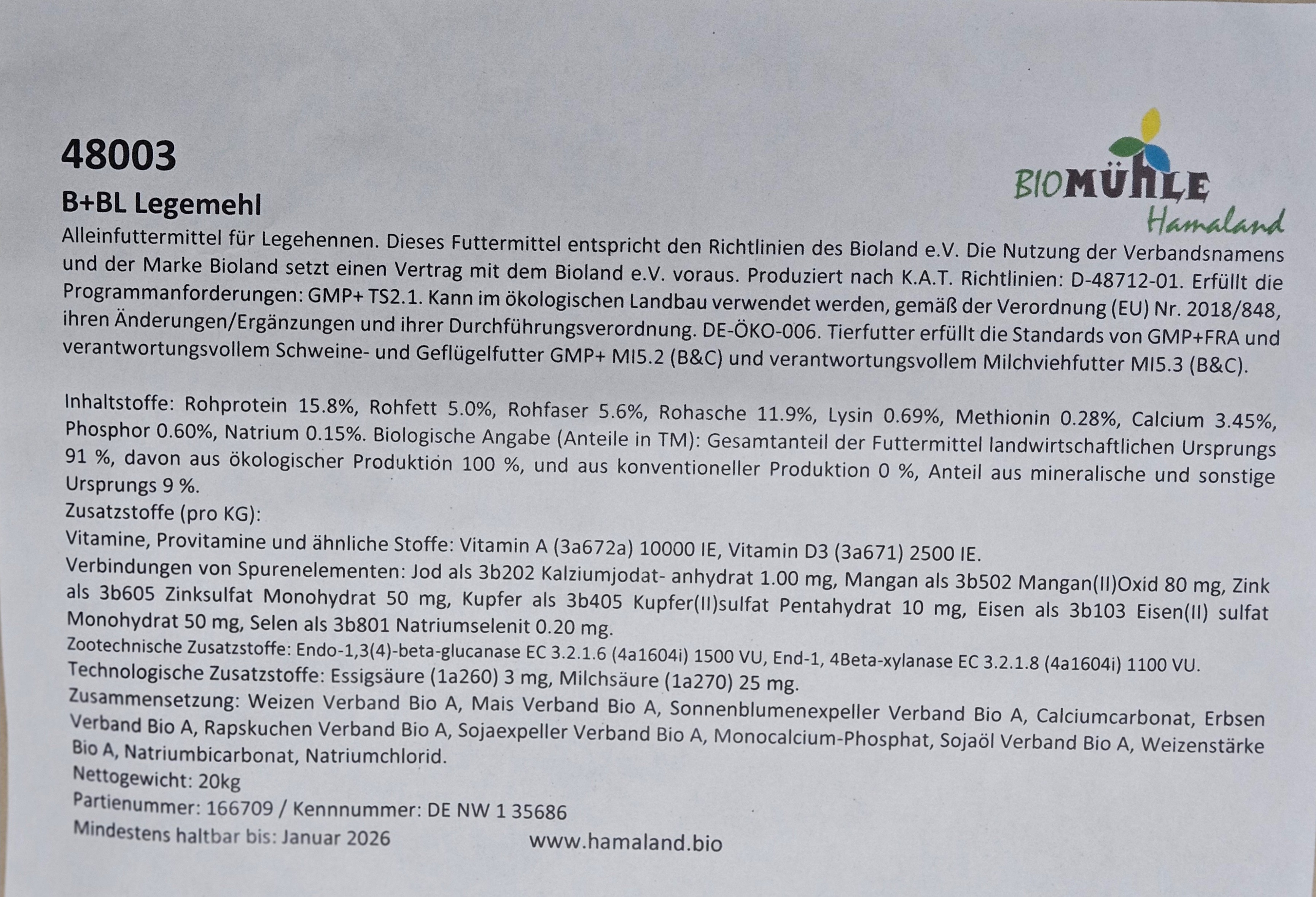 Dieses Futter entspricht den Richtlinien des Bioland e.V.