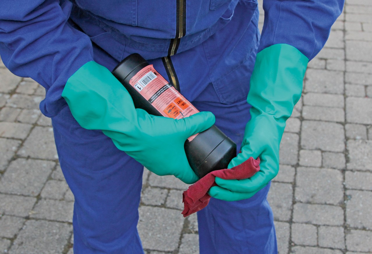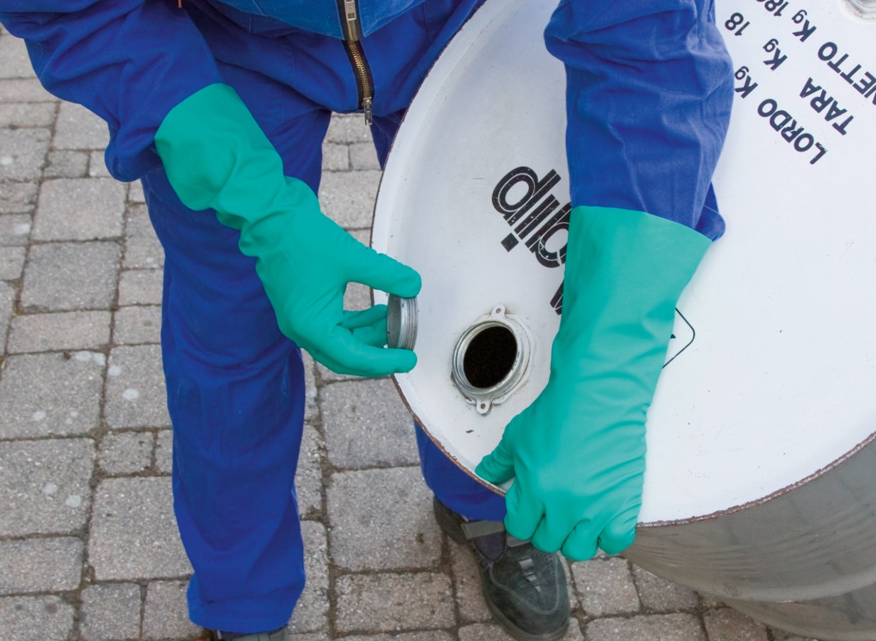 - flüssigkeitsdichter Chemikalienhandschuh mit starker Nitrilbeschichtung