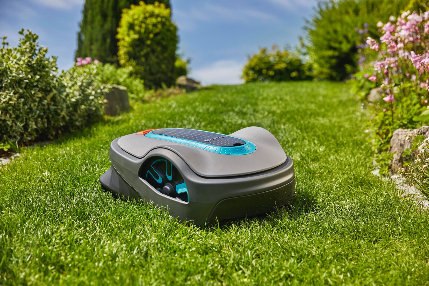 Rasenpflege kann so einfach und mühelos sein! Der GARDENA SILENO life hinterlässt dank des SensorCut Systems keine Streifen, sondern sorgt für ein ausgewogenes Schnittbild und einen perfekt gepflegten Rasenteppich. Er ist für Rasenflächen bis 850 Quadratmeter geeignet und passt die Mähzeiten automatisch dem Rasenwachstum an. Er bewältigt Steigungen bis 35 Prozent. In schmalen Korridoren und engen Durchfahrten wird der Rasen, dank der CorridorCut Funktion ebenso perfekt gepflegt wie auf freien Flächen. In Bereichen, in denen seltener gemäht wird, beispielsweise unter Trampolinen, ist die Spot Cutting Funktion ideal: Der Mähroboter arbeitet dann in Spiralform, um einzelne Stellen des Rasens mit höherem Gras zu schneiden. Durch das Begrenzungskabel wird der Mähbereich flexibel aber zuverlässig bestimmt – damit der Mähroboter nur auf den vorgegebenen Flächen mäht. Ein hochsensibler Kollisionssensor sorgt dafür, dass sich der Mähroboter an Hindernissen im Garten nicht stört. Der SILENO life ist unabhängig vom Wetter auf dem Rasen im Einsatz und dabei so leise, dass man ihn kaum hört. Ist er fertig, kehrt er vollautomatisch zur Ladestation zurück. Sobald sich jedoch die Außentemperaturen dem Gefrierpunkt nähern, wird der Zeitplan des Mähroboters ausgesetzt, um den Rasen zu schützen. Bei Bedarf kann man einfach zum Gartenschlauch greifen, um Gehäuse, Messer und Räder zu reinigen. Bei der Installation führt ein Programmierungsassistent durch das Menü und errechnet selbstständig einen Mähplan. Die Mähzeiten sind aber auch frei programmierbar. So ist der SILENO life nur dann im Einsatz, wenn Sie es wünschen. Ein PIN-Code sorgt für sicheren Diebstahlschutz.