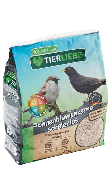 TIERLIEBE Sonnenblumenkerne schalenlos eignen sich das ganze Jahr zur Fütterung zahlreicher Vogelarten, wie zum Beispiel Meisen, Amseln oder Spatzen.