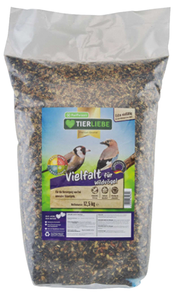 TIERLIEBE Vielfalt für Wildvögel bietet zu jeder Jahreszeit das perfekte Streufutter für unsere heimischen Wildvögel, mit vielen fettummantelten Getreideflocken, vitaminreichen Saaten und gesunden Früchten. Die abwechslungsreiche Mischung ist über das ganze Jahr eine optimale Nahrungsergänzung.