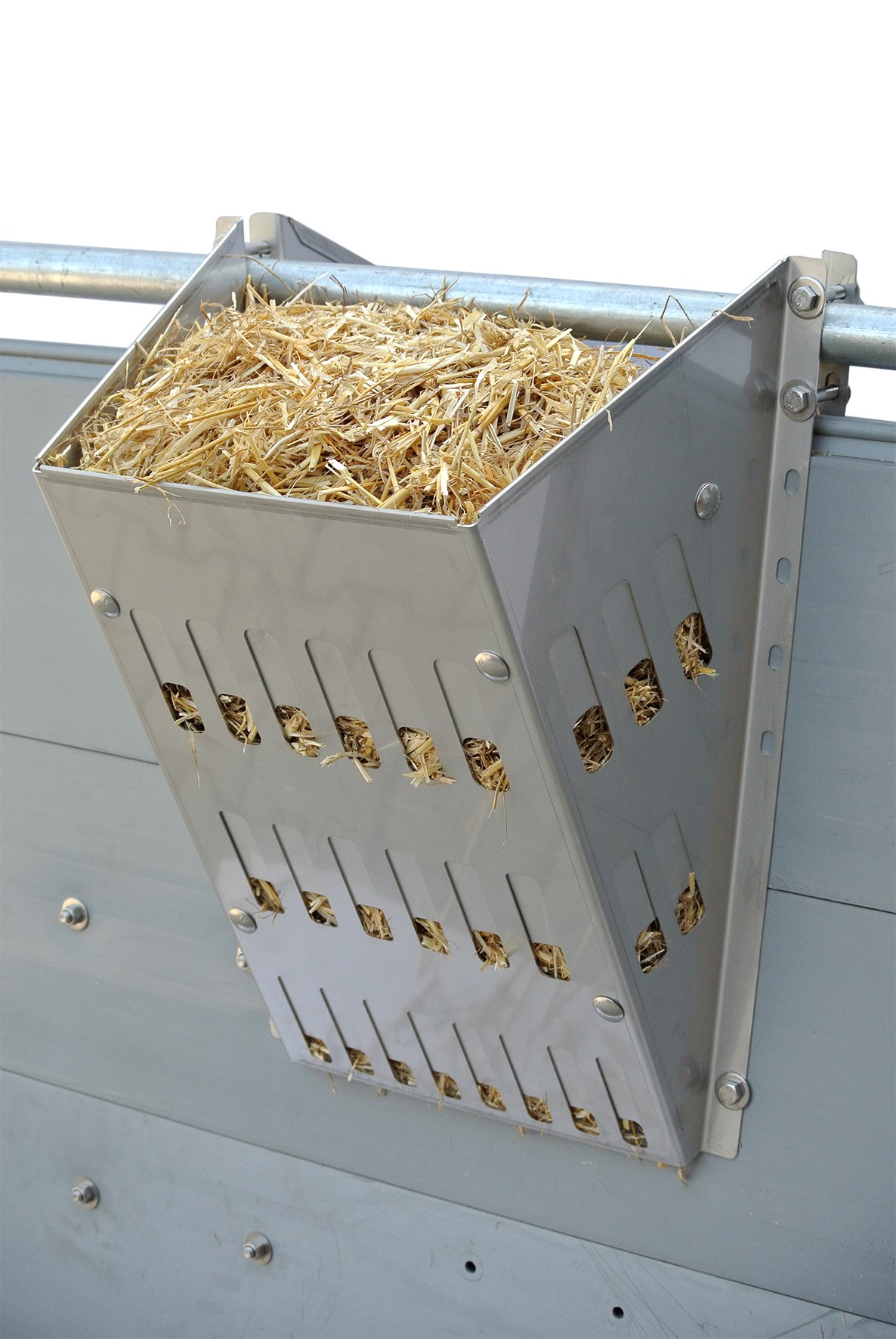 - Unterschiedliche Lochgrößen, so "wächst" die Raufe mit den Schweinen. Hierdurch wird verhindert, dass zu große Mengen aus der Raufe entnommen werden