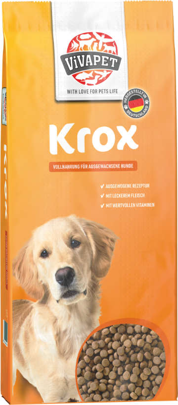 ViVAPET Krox ist eine leckere Vollnahrung für ausgewachsene Hunde aller Rassen mit normalem Aktivitätsniveau. Die ausgewogene Zusammensetzung enthält alle wichtigen Nährstoffe, Mineralstoffe, Spurenelemente und Vitamine, die Ihr Hund täglich benötigt.